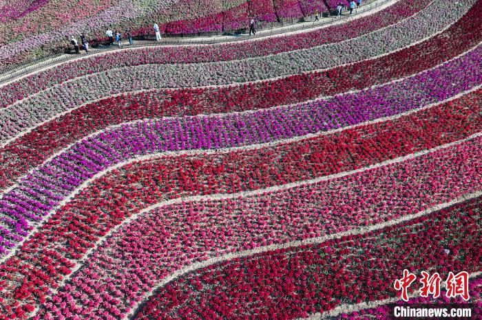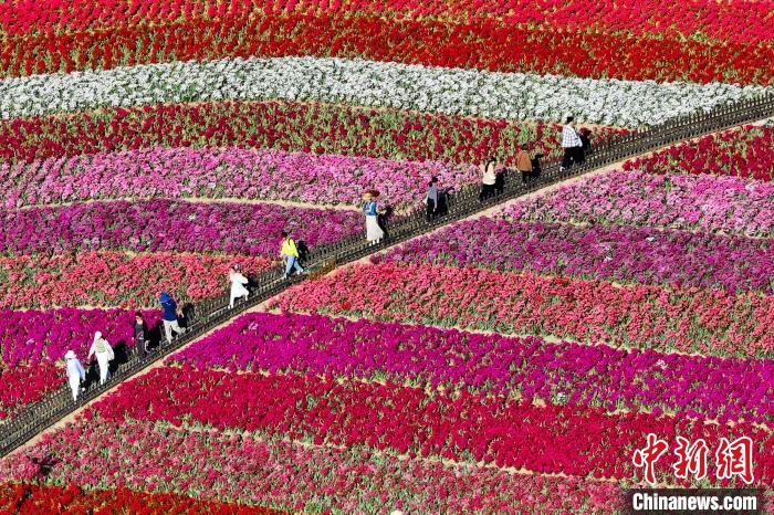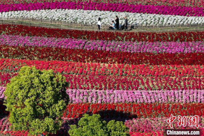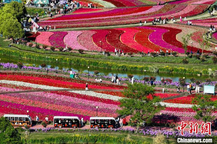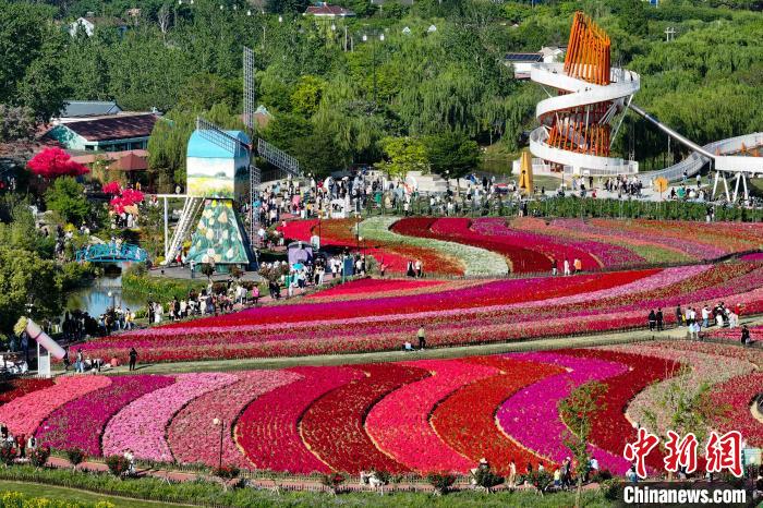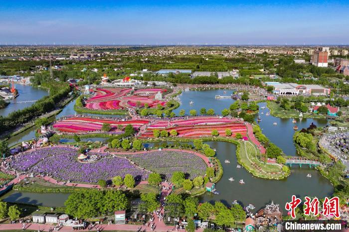航拍黄海之滨荷兰花海 缤纷色彩绘就生态文旅新图景